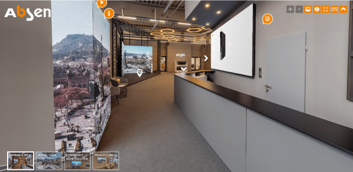 Key products featured in the showroom include Absen Acclaim, Absenicon 3.0, and N Plus Series.