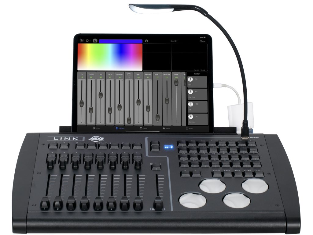 ADJ has introduced the latest edition to its range of lighting control solutions, the LINK. This unique hardware/software system combines the processing power, wireless connectivity and multitouch screen of an iPad with lighting-specific tactile controls and a four universe DMX interface to deliver a unique control solution. Powerful and user-friendly, the LINK fills the void between small single universe DMX controllers and large format lighting consoles. It is designed to simplify control for aspiring lighting designers, small production companies, churches, community theatres and performances spaces, providing a new connection between lights and creativity.