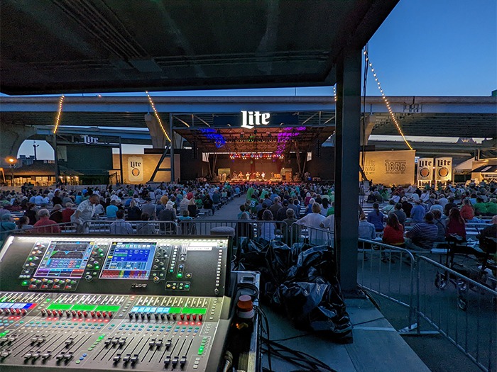 The Miller Lite stage was powered by a dLive S7000 surface at front of house and a C3500 surface for monitors. The DM48 MixRack at FOH fed an EAW line array digitally via Dante.