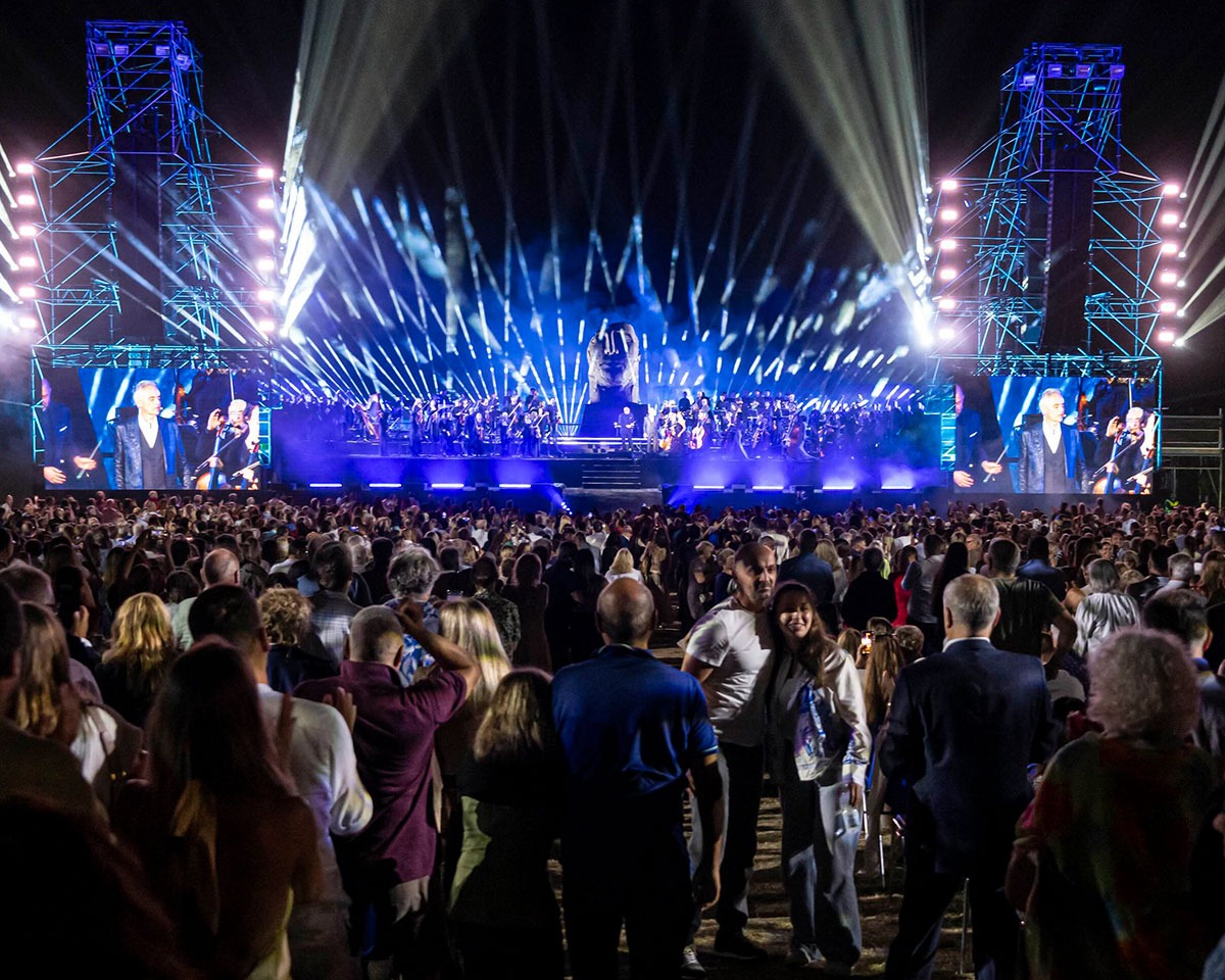 Sitting some 50km south of Pisa and set in the breathtaking beauty of the Tuscan countryside, the Teatro del Silenzio was designed by architect Alberto Bartalini using a natural amphitheater adjacent to Andrea Bocelli’s home-town of Lajatico. This was the location for the final concert for the celebrated Italian tenor’s month-long tour, produced by City Sound & Events, marking the 20th anniversary of this unique performance space.