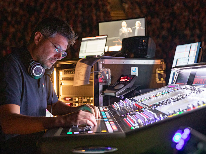 “Every tour has its challenges, but this is one of a kind. On stage we have a 69-piece orchestra and a 60-piece choir, over 100 condenser microphones and around 4-5 guests per show, plus Andrea himself. The attention to detail is mandatory,” Lombardi said. “One small change can make a big difference, and as we play between stadiums and arenas, it’s my duty to ensure every single member of the audience has the best experience possible, from the front to the back row. With my systems engineer Alessandro Cestaro, we already know what to do to achieve what we want – without even having to speak about it.”