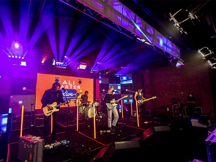 Astera AX1 Pixel Tubes are doing their bit – both as energising effects luminaires and as practical lights – marking out the social distancing spaces – onstage at Delivered Live, a brand-new performance-based web streaming concept for music and comedy.