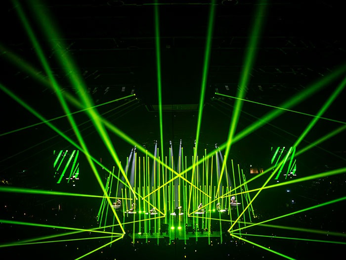 “I have already used Ayrton fixtures for many tours and programmes: Eurus, Domino, Perseo, Cobra etc…” stated De Cave. “This time I chose Cobra as the special feature in the lighting design precisely because of its double value as both beam and spot. The concept of the project originated in a circular design that entirely enveloped the band, an embrace of light that perfectly suited the band’s musical genre – electronic music but with an ‘80s touch.”