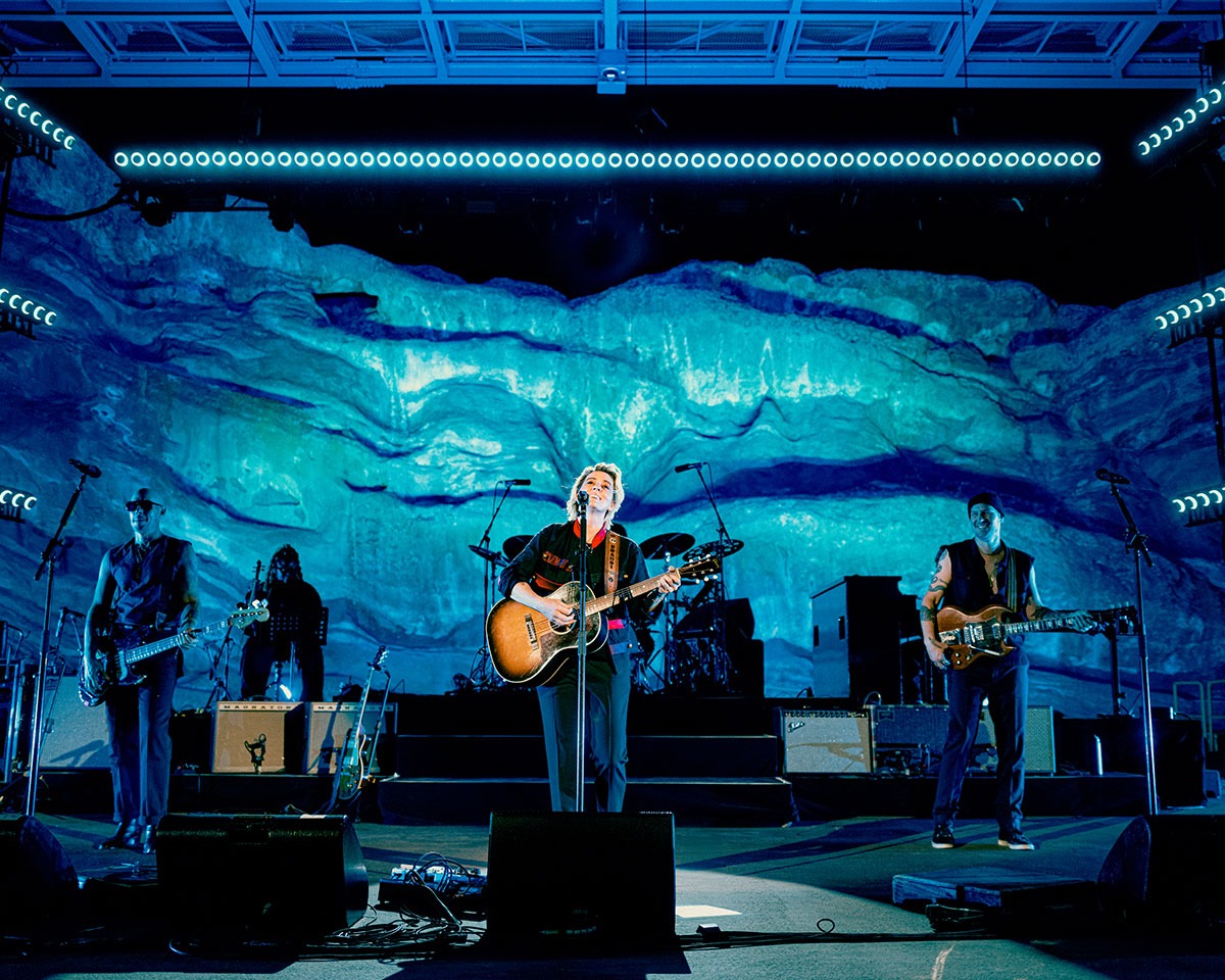 Although Petrus did not have a history with Carlile he had worked with Sandbox Management, which teamed with Carlile’s Phantom Management on the event. His concept for the concert lighting was to use the venue’s unique rocky landscape as a set piece with no screens upstage and lighting illuminating the artist and the scenery.