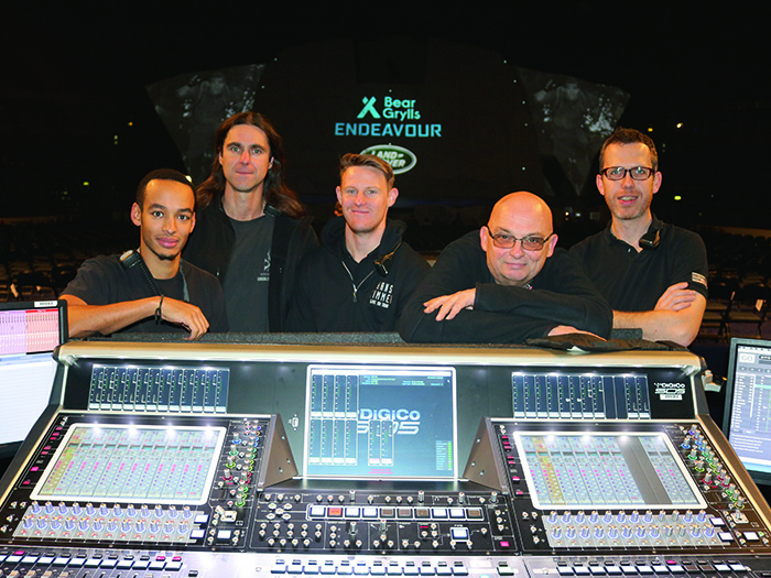 Brought on to find a solution was UK audio specialist, Britannia Row Productions. Lez Dwight Project Manager for Brit Row was involved from the concept stage and asked Sound Engineer/Designer Colin Pink to come on board to bring the design together. Talking TPi through the audio set up for the show was Audio Crew Chief and RF Tech, Josh Thomas. “The system that we have got out on tour is a L/R rear surround system. On the first shows at Wembley Arena, we had a slightly different set-up which also had a mid-section L/R surround array.” To increase the immersion of the audience, sound effects were delivered from behind the audience to really engulf the audience in the story. For example, before the intermission, in true Bear Grylls fashion, the production creates the illusion of a helicopter flying in to pick up the star, an illusion that was helped in great part with the audio department creating a sound effect that sounded as if it came from behind the audience traveling toward the stage.