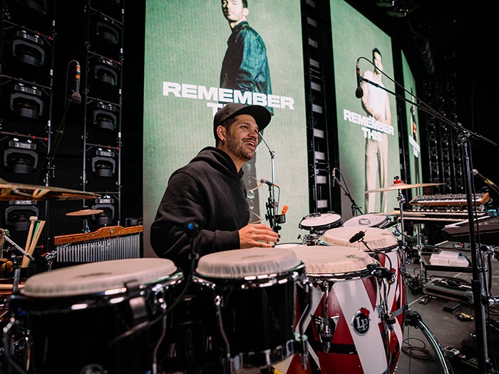 Arriaga goes on to add that the 4011 overhead mics are especially important to the way he plays. “I use a lot of shakers and tambourines, so you have to use open, wide mics,” he says. “With other mics, you hear so much bleed from the other instruments, which is not conducive to a proper performance. But the DPA 4011s are outstanding. I move around a lot, dancing and jumping, and to know what the mics are going to pick up, and when, is a game changer for me as far as incorporating that choreography and musical articulation dynamic. I love that.”