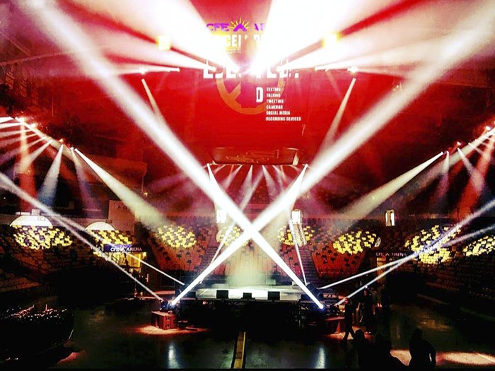The team from Showtime used 12 Chauvet Professional Rogue R2 Wash fixtures and 16 Nexus 4×4 panels to create the look. They positioned the Chauvet Professional Rogue units on horizontal truss bars suspended 30 inches over the 24-inch x 24-inch centre stage. Drawing on the fixture’s tight beam angle, they focused light on the stage truss. They also used the Rogue fixtures for audience lighting.