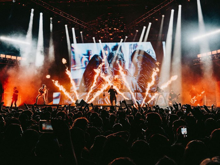 “The Mavericks were very important in creating varied looks to reflect different moments,” said Mungal. “They were used as bright punchy washes to light the band and dancers. They also gave us everything from wash looks and pixel effects, to great aerial effects that played off beautifully against the haze and fog. We called on atmospherics for some creepy scary songs, in addition to rolling out lots of pyro and flame effects. Given the kind of band this is, we had a lot of variations and scene change ups throughout the show.”