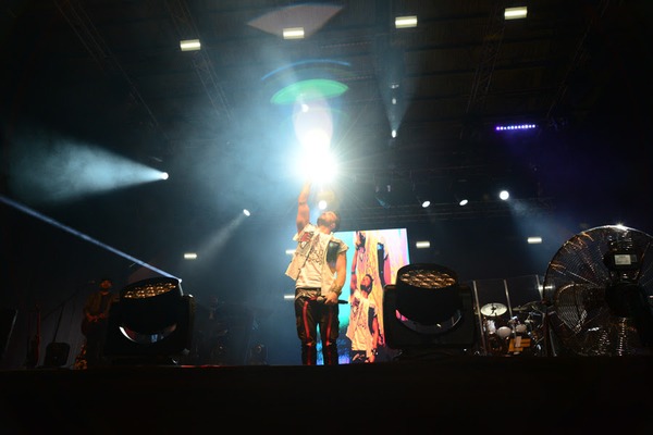 His band feature 4 musicians, background vocals, guest singers, while further inputs are provided by the voice and acoustic guitar of the Artist himself — all running through 56 channels of a DiGiCo SD10, upgraded with Waves SoundGrid and UAD plugins as well as a Korg Kaoss Pad for additional live FX. Each musician uses IEM monitoring, but the stage is not entirely silent: subs are available for the musicians’ reference sound and side-fills for dancers. While monitor mixes are handled by Zoilo Rodriguez.