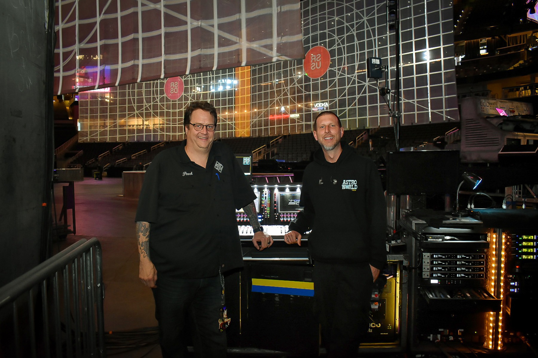 “Mixing just four inputs in an arena show is one of the greatest challenges of my career,” shared Ken “Pooch” Van Druten about his gig with rapper Travis Scott, who is currently on the second North American leg of the “Astroworld – Wish You Were Here Tour”. Pooch reports that audio for a pair of DiGiCo SD12 consoles for both house and monitors is piloting Scott’s sonic voyage.