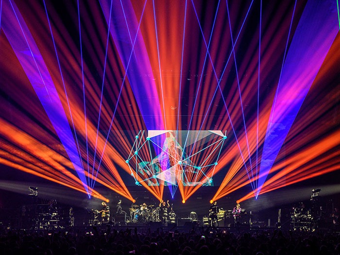 “We added six Excaliburs to the far offstage wings with a laser behind each wing group,” Liddle explained. “We also used them to create straight solid beam fans in some of the faster songs like ‘Temptation’ and added inevitable fixed to mixed blue flashes for ‘Blue Monday’, the prisms were great for indexed 90º bumps” Liddle said.