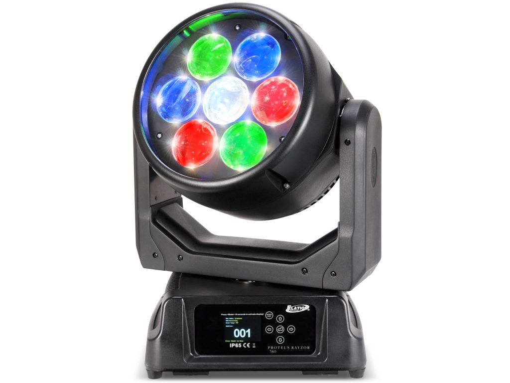 Offering the identical feature set and powerful output as the RAYZOR 760, the Proteus RAYZOR 760 is a highly effective LED wash light and unique speciality effect light in one. Driven by seven, independently controlled, 60W RGBW LEDs and housing a wide 5-77 degree zoom, the Proteus RAYZOR 760 can produce an intense and well-defined mid-air beam of over 8000 lumens and then spread exceptionally wide for even wash coverage.
