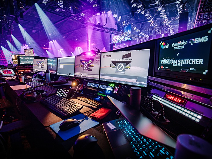 Preparations for Eurovision began in March 2021, where a pre-visualisation room was installed for the entire light and motion operator team and two media server operator positions: one on site in Amsterdam and one remote operator. Both worked the live show programming. A disguise 4x4pro was used to drive NDI feeds into the capture visualisation system.