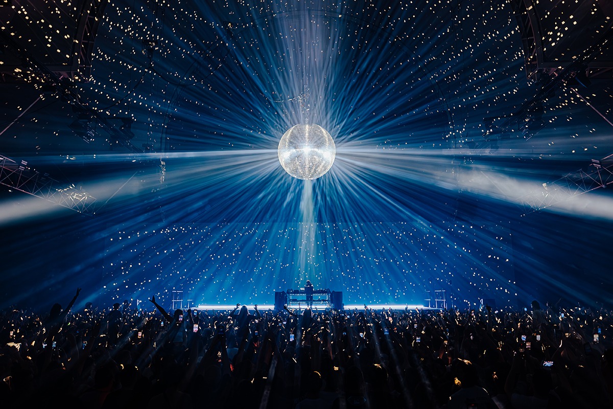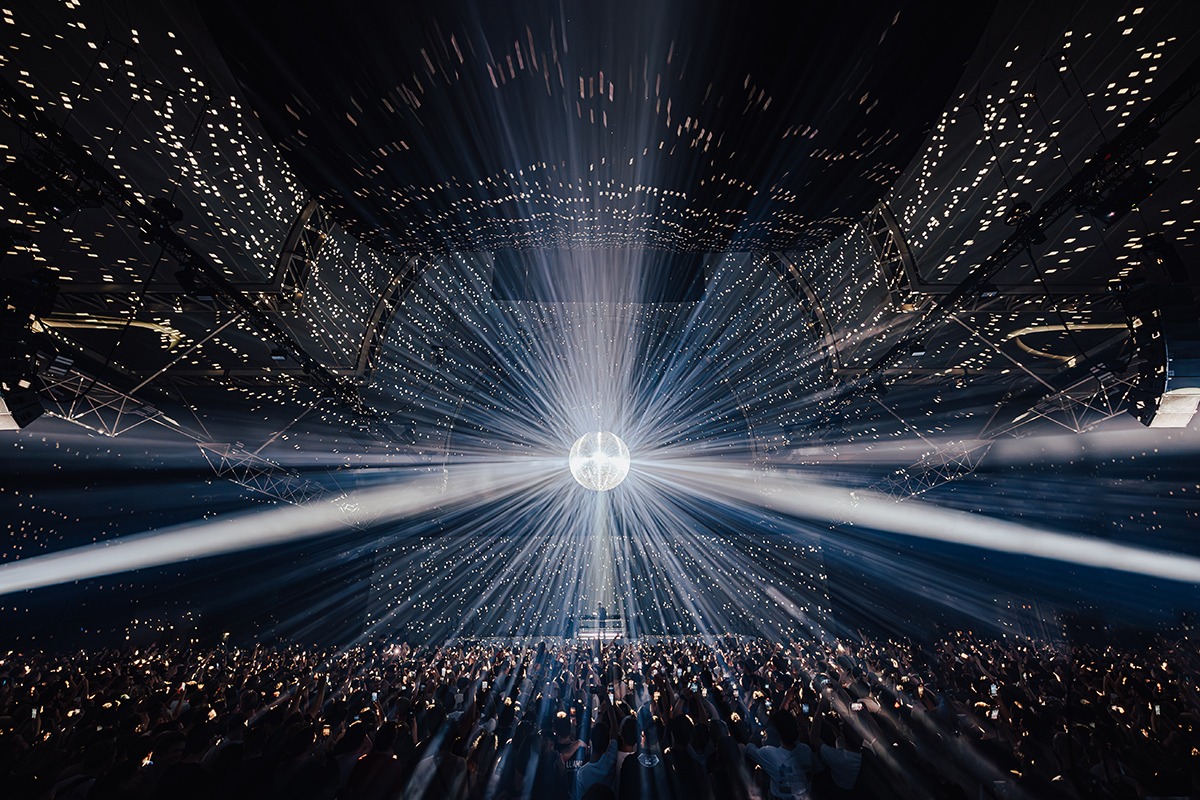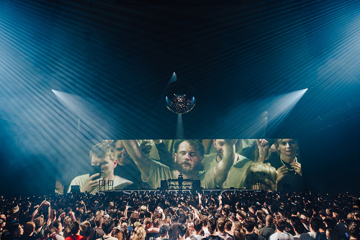 “I think the strongest look from the show is definitely the mirror ball moments. As frequent as these effects are in the industry, you can’t beat the cheer of a crowd at a traditional mirror ball lighting up the room. My other favourite looks would be the projection lines across the crowd. They created a movement from the back of the room to the front that simply can’t be replicated with lighting fixtures. This coupled with the perfect amount of haze gave us the perfect outcome. We projected straight down on to Jamie xx then used robotic cameras to project on the screen behind him for a really cool effect.”