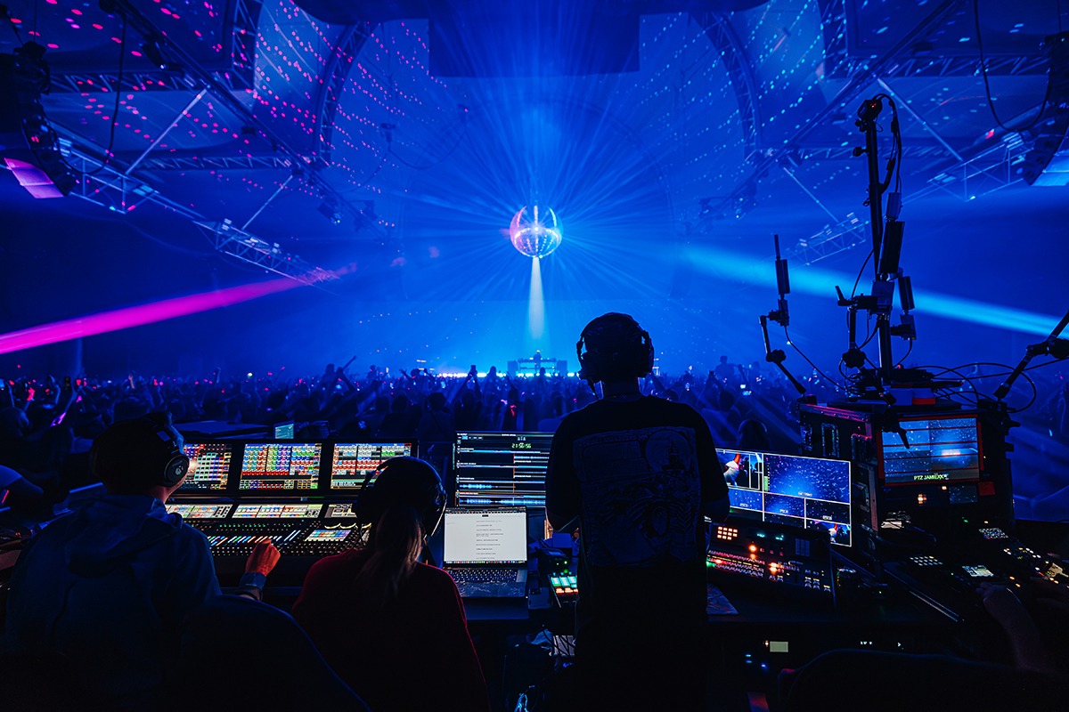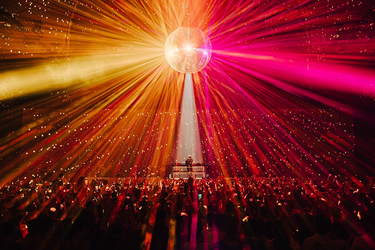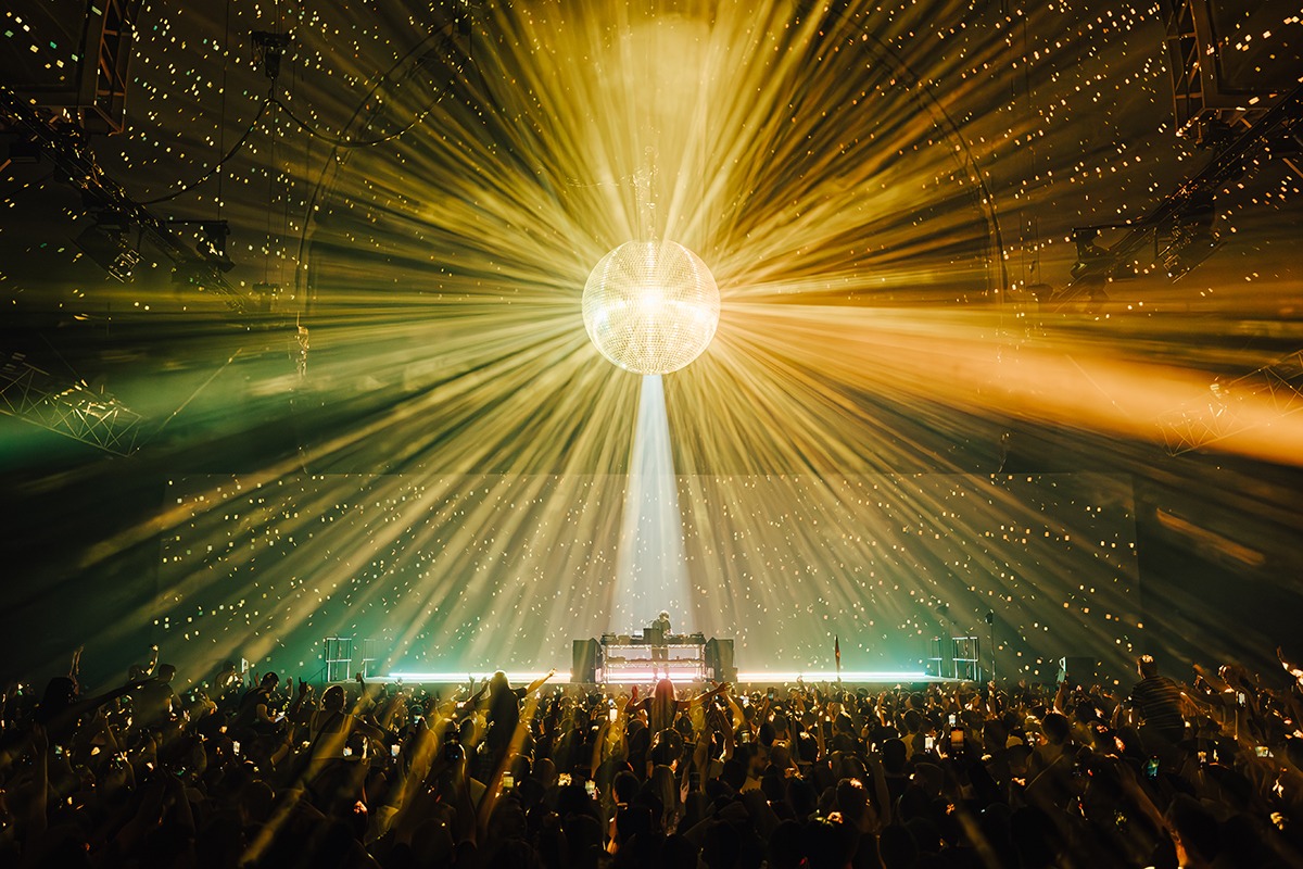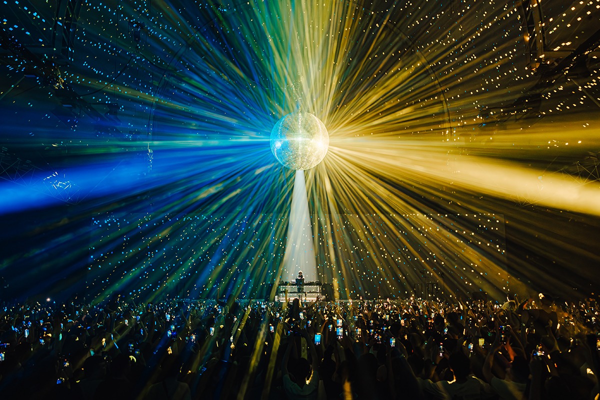 “I think the strongest look from the show is definitely the mirror ball moments. As frequent as these effects are in the industry, you can’t beat the cheer of a crowd at a traditional mirror ball lighting up the room. My other favourite looks would be the projection lines across the crowd. They created a movement from the back of the room to the front that simply can’t be replicated with lighting fixtures. This coupled with the perfect amount of haze gave us the perfect outcome. We projected straight down on to Jamie xx then used robotic cameras to project on the screen behind him for a really cool effect.”