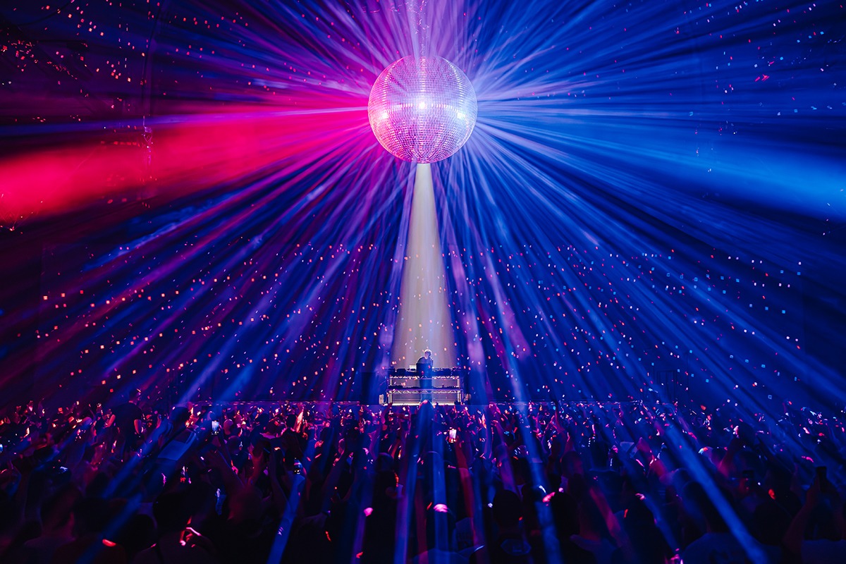“We had to consider that the lighting was always going to complement the projection. There were, of course, always going to be some huge lighting moments to help build the energy in the room that the projection couldn’t. The mirror ball moments required lighting only so the effect of it could be fully appreciated in the room. We had a 2.2m mirror ball from Mirror Ball Paul that I believe was fresh off the production line.”
