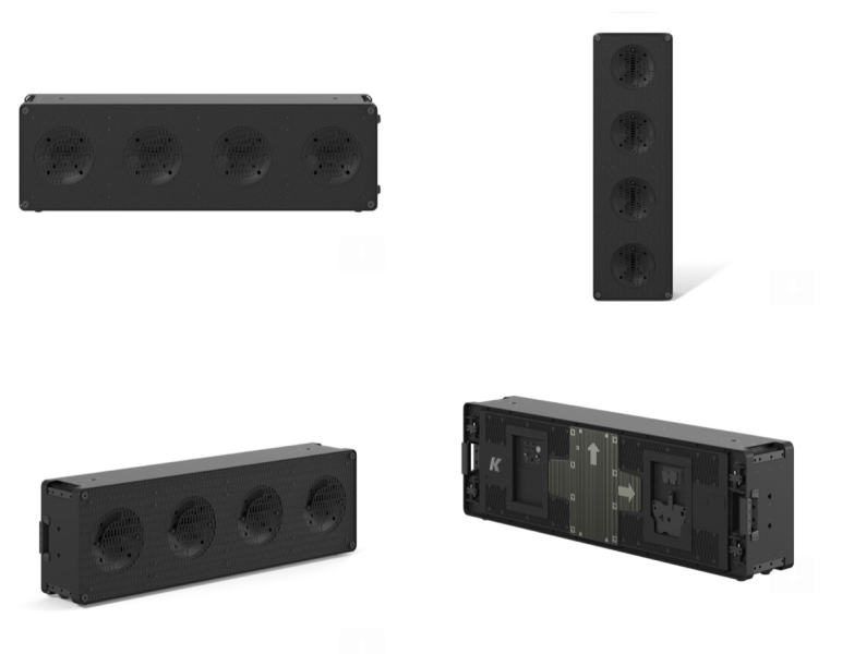 The KH7 line array element features four 12” coaxial neodymium magnet woofers and produces an exceptional peak output of 141 dB SPL for powerful brilliance with no distortion. An integrated 4 channel Class D amplifier delivers 2000 W at 4Ω to each woofer, and their 100° by 30° horn rotates to select a wide or narrow pattern.