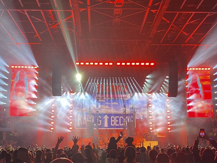 Joining the white tube elements in animating the concert with vibrant looks were the new fixture’s colour mixing LED faces, which themselves feature 14 pixel mappable zones. Coordinating the bursts of vivid colour blasts with the relentless strobe effects, creating a panorama that could be felt as well as seen.