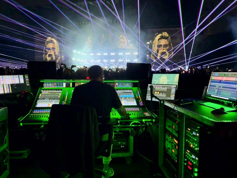 Playing key roles on the tour are a pair of DiGiCo consoles: a Quantum852 console at FOH and Quantum338 desk on monitors, all sharing two SD-Racks – one each stage left and right, and one SD-MiNi Rack for track playback – on a dual Optocore loop. These are joined by Fourier Audio’s transform.engine loaded with v1.3 software and transform.suite ’25 at FOH, plus an immersive KLANG:konductor IEM monitor mixing system in monitor world. All of this DiGiCo-centric gear was supplied by the tour’s technology vendor, Sound Image, a Clair Global brand.