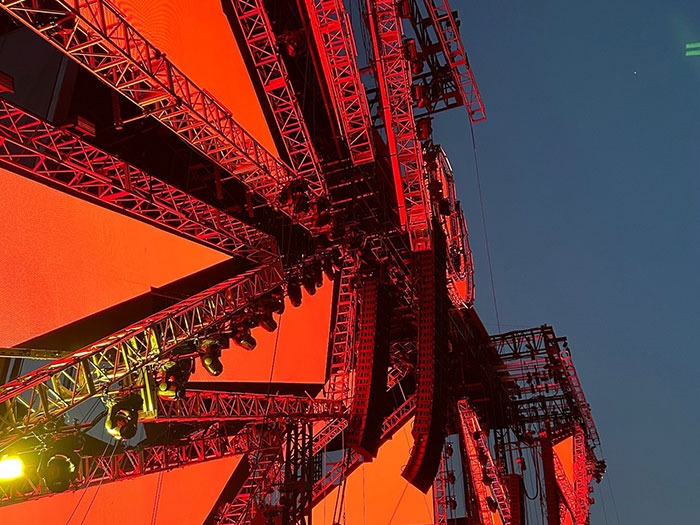 The design of the rig, the load bearing capabilities of the temporary stage and the process of building and flying the different sections of the rig meant that, at times, the weights on the roof beams were close to the maximum allowable weight. Live monitoring of the weights ensured that the structure and hoists were not overloaded. Additionally, the confined space on stage and the offshore winds also added further complexities which were overcome by using the Broadweigh kit.