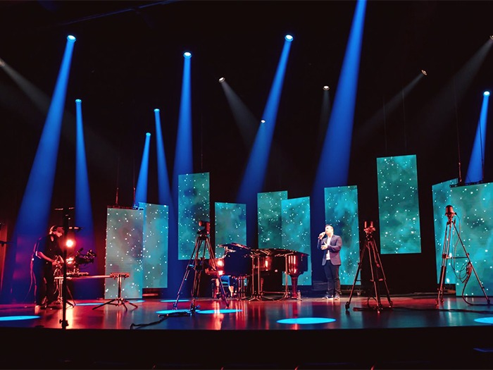 “The challenge we face was to produce 60-minute episodes featuring a very wide range of talent and interviews, all while respecting some very demanding social distancing rules both for artist and crew,” continued Perron. “Right off the bat, it was agreed that all but one camera would be remotely operated and that their positions would be determined by the space occupied by the talent. The meant that instead of an artist facing an audience at a 90-degree angle, the actual observers would be in a field of over 200-degrees. By using seven cameras all over the stage, there was no longer a standard observer viewing angle. This posed a bit of challenge for key lighting.”