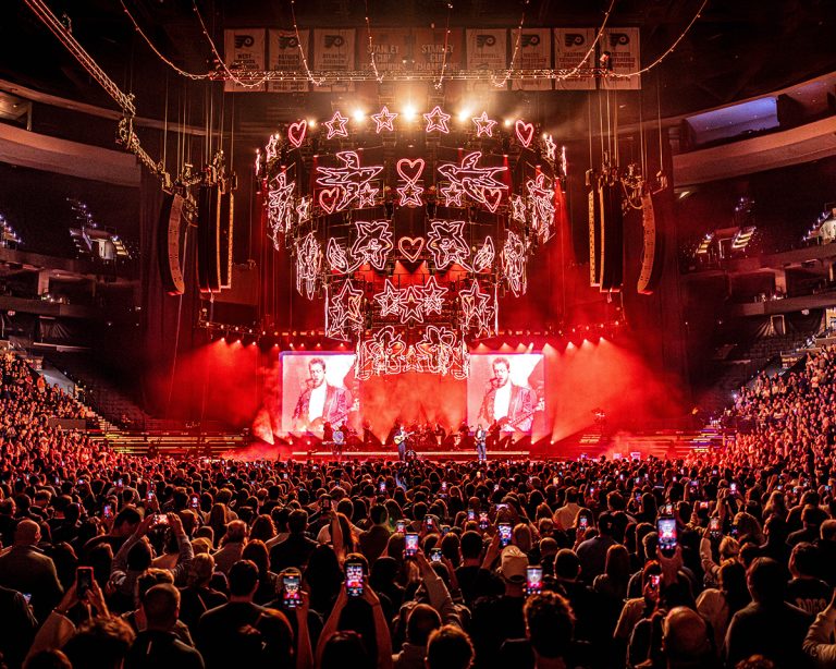 The tour also saw a few new suppliers, including Solotech providing the triple threat of audio, lighting, and video. Meanwhile, the production also brought on TAIT (staging and automation), Ox Event House (scenic), Reed Rigging (rigging), Strictly FX (SFX), Upstaging (trucking), Dreamliner (buses), and Freight Minds (freighting). Also on board for the first time was Rebus – a newly rebranded production arm of Treatment Studios overseen by Willie Williams, Mike Smith, and Chris Booth.