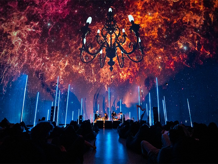 The SAT venue also presented challenges. First of all, the 50-person audience was seated low to the ground in beanbag chairs. “We needed a system that had a lot of punch in the low end, but we didn’t want to block the video on the 360-degree projection dome,” said LaFontaine, “so we ground-stacked one 900-LFC sub with four LEOPARDs on top per side, plus three more 900-LFCs for additional low-end reinforcement. We also had eight ULTRA-X40 point source loudspeakers spread around the room for surrounds.”