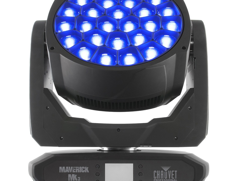 Chauvet Professional has taking its popular Maverick series to new heights with the introduction of the Maverick MK3 Wash, a powerful and intensely bright RGBW LED moving wash. Powered by 27 40W OSRAM OSTAR LEDs, the new pixel mappable fixture has the output and performance features needed for even the largest arena applications.