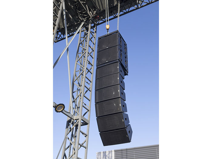 Rigging hardware is integrated, with no loose parts. The AutoRigä system automatically connects the front rigging system when speakers are assembled, with a guided back rigging system for easy angle adjustment. Perfect coverage is achievable with a choice of 11 angles between cabinets, in arrays of up to 12 boxes, indoors or outdoors.