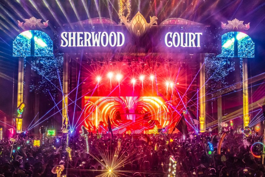 The main content themes for the Sherwood Court stage revolved around nature, focusing on trees, water, jungle, vines, butterflies, and the famous Sherwood elephant, many of which within an overarching stained-glass aesthetic. “We prepare a deck of the scenic content which is shared with incoming artists so they can choose what and how it is displayed during their performance,” Harris continued.
