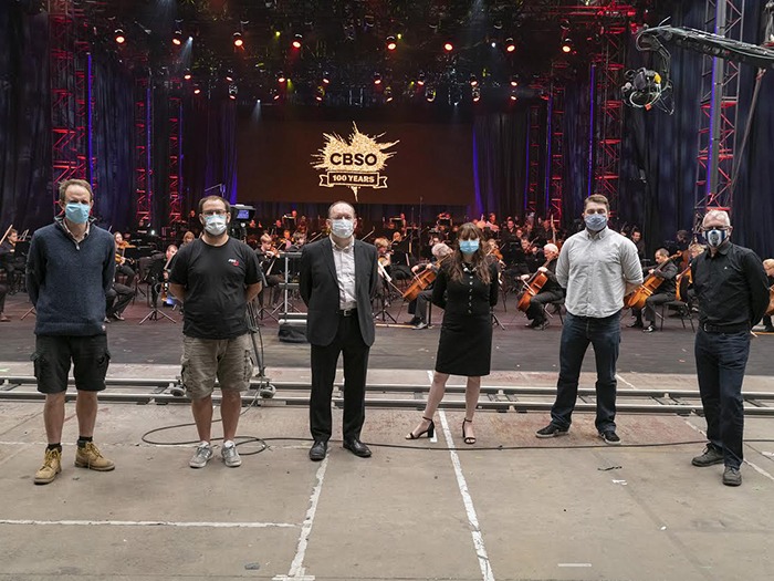 The closure of the Birmingham Symphony Hall earlier this year meant that the CBSO’s centenary birthday celebrations were unable to take place. At a time when the Live Event industry has gone dark with a ban on mass gatherings, safety of all involved was paramount. John Adkins, Managing Director of JA Productions and long-time collaborator, visited the PRG Live Space facility back in June and immediately saw the potential for the Orchestra – it was the perfect place to shoot a Livestream with over 75 performers, all whilst adhering to social distancing guidelines.