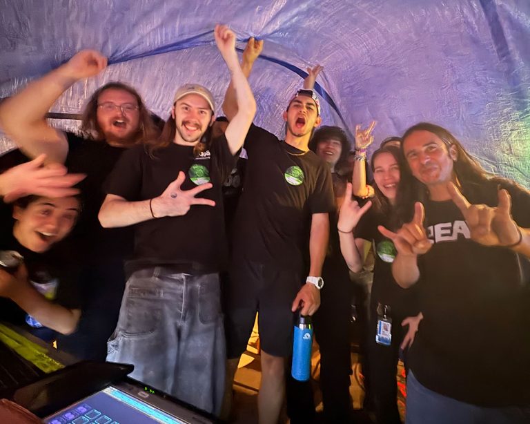 “During this terrific all day experience, our students had the opportunity to visit with Eddie’s entire crew, learning on-the-job tips, tricks, and techniques from his systems engineer, monitor engineer, and more,” explained Jason Losett, CRAS IT Director. “They were able to and encouraged to tour the stage to examine Eddie’s microphone setup and placement while he talked wireless frequencies, and got a master class in speaker alignment and phase. Additionally, students had the opportunity to spend time with FOH engineer Weston Blaha, who mixes Amon Amarth (Pantera’s opening act). Everyone on the crew was exceedingly gracious with their time and knowledge.”