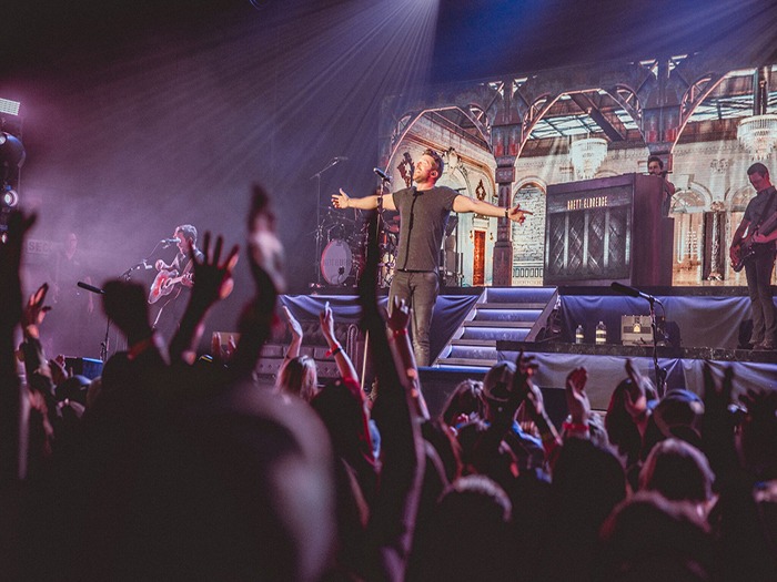 The goal was to design “theatrical-style lighting that would highlight the video set and props then take you into an almost pop music show,” Whitehouse said. He also had to consider the tour’s budget, size and the long-term efficiency and servicing of the equipment.