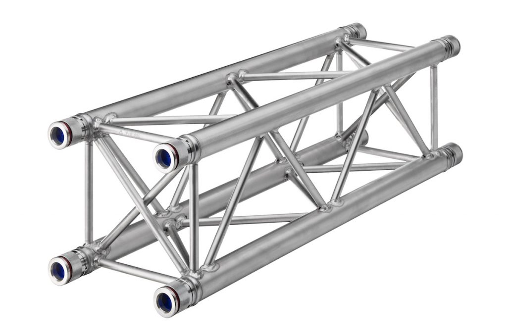 Tested general sound levels are around 55dB, where a conical truss system generates a sound level of 80dB during assembly. Furthermore, it reduces assembly and disassembly time. Tested general assembly times are up to five times faster than those for truss with conical coupling systems and 10 times faster than any bolted truss.