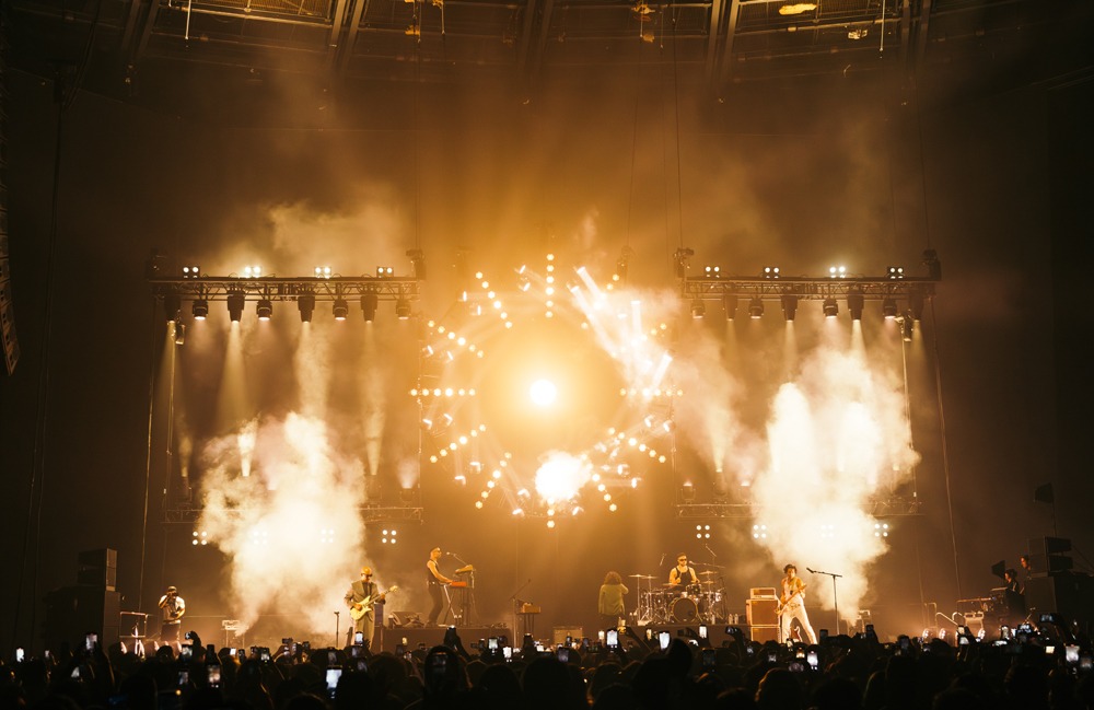 “The main element of this design is the 30ft circle truss. I wanted it to feel like a giant portal, something that would look like a scenic element. This is where the cinematic inspiration came into play. I love using tungsten fixtures; there really is nothing that gives that old-school rock ‘n’ roll, movie set feeling. I used 12 Portman P2 Hexalines, which were rigged with the inner segment at a 25° angle. This added depth to the circle, it made it feel like you were staring into it instead of at it. I also placed 24 Elation Rayzor 760 washes between the Hexalines. These washes allowed us to change the feeling of the portal from sharp and geometrical to fuzzy and wide. In the centre of the circle, was an old-school 10K Fresnel. It looks like a huge lighthouse light. My intention was for the portal to grow in intensity and complexity throughout the show. I held back at the start and slowly revealed layer after layer to the portal. We also had four lighting trusses on stage and a downstage lighting truss as well.”