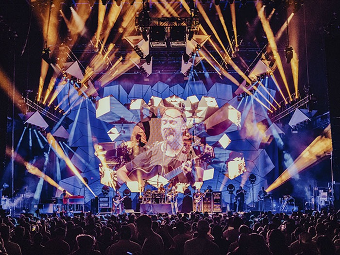 The Dave Matthews Band (DMB) was on the road again in the U.S. promoting their latest album, Come Tomorrow with another visually provocative production design by DMB Lighting Designer and Director, Fenton Williams. Williams worked with Aaron Stinebrink from lighting suppliers TMS, on the lighting design, and the pair specified over 100 Robe fixtures to be at the heart of the show.