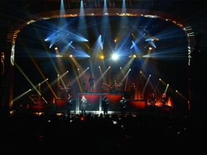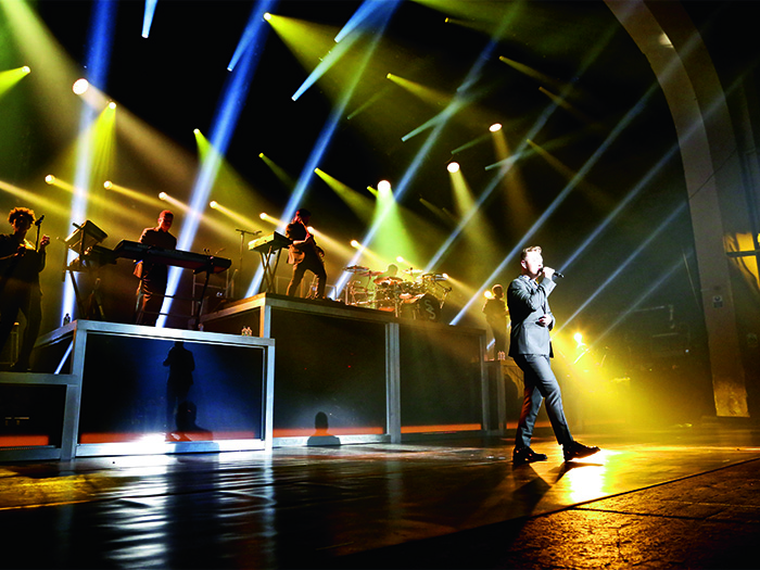 The set comprises a number of risers that accommodate the band, backed by a curvaceous, variable height truss packed with Clay Paky Sharpy Wash 330’s. An overhead a rig of Philips Vari-Lite VL3000 Spots help to sculpt and give form to the various looks, while Clay Paky B-EYE K20’s project rich washes across the stage and provide an element of eye candy in the rig. Clad with a diffusing surface, the riser fasciae provide a subtly changing backdrop to Smith’s centre position with subtle, pulsing colour wipes across the LED via a Catalyst media server, triggered by Potts’ MA Lighting grandMA console.