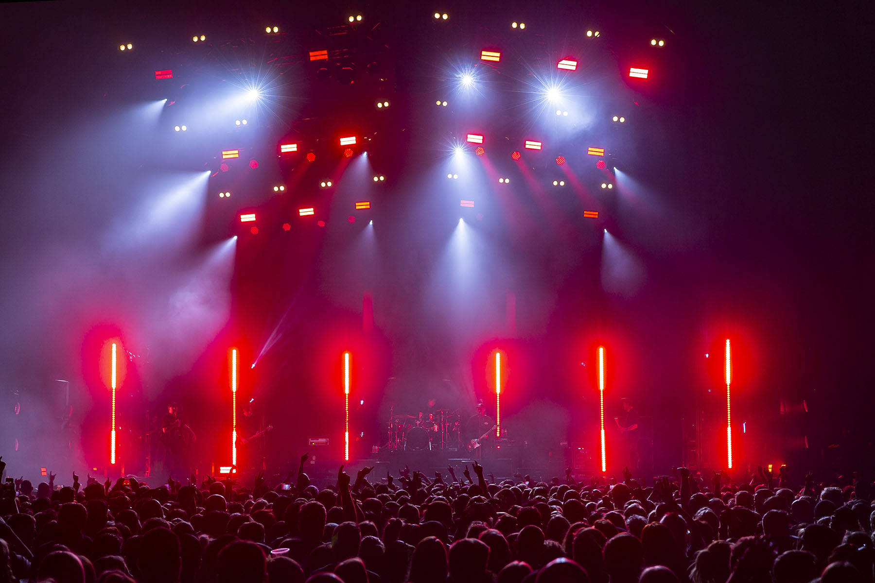 For the newer music, he used colder whites and blues and neon green palettes as a recurring theme. “The band was also keen on heavy backlighting and silhouettes on these tracks” explained Paul, all of which helped in hitting the ambience sweet spots. For the older songs, Paul went warmer on the colouration and effects, and the contrast between the two treatments enabled him to create distinctive looks for different parts of the set.