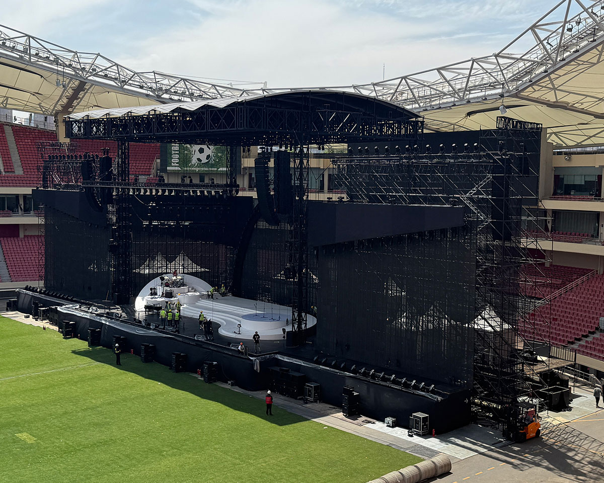 Two additional arrays of six CO12 each were flown as delays on the back of the FOH structure. These arrays were closer to fans in those sections to reduce the number of enclosures required for full coverage and reduce unwanted energy to radiate outside of the venue in accordance with the local promoter and municipality. The audio crew was keenly aware of the impression the shows might leave in Shanghai, as Falcone detailed: “We had a huge responsibility since it was the vendor’s first run with this PA. They had a lot on the line, and if I had a bad mix or if we experienced any technical issues, it wouldn’t be a great look, but in the end, it was all hugs and smiles. Everyone knew we were using Cohesion for the first time, and we only heard how great it was. The audience was loving it.”