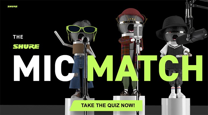 Developed by Shure sound engineers, the multiple choice Mic Match quiz enables artists to discover the best microphone to help address their needs. Each question highlights the most important factors to consider when choosing a microphone and presents them in an easy way. Questions range from ‘I plan to record my next song… A) in a studio B) on-the-go C) at home’ to ‘My vocals are… A) loud and powerful B) soft and subtle.’ The multi-step quiz addresses vocalist priorities in the moment and chooses the best microphone for their environment.