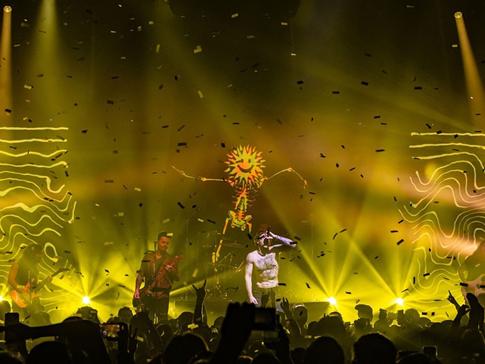 “Beartooth has always had very solid colours define their album art, so that helped drive the overall ‘pink hue’ of the show,” he explained. “When the band would play a known hit from another album, I would use that album’s colour for the base colour of that song. This colour scheme matched up perfectly with the video content.”