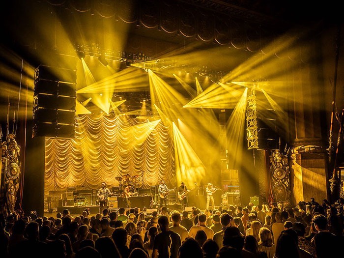 Joshua Schultz admits that at first, he wasn’t overly enthused about lighting a show against a large, deeply rippled curtain background for Turnpike Troubadours when they performed at the historic Beacon Theatre. That changed when he saw how the background played off against light.