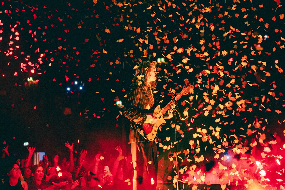 Lighting featured ACME Lighting Pulsar S2s, alongside GLP JDC1s and X4 Bars, adding visual flair inside “The Beanie” – a giant inflatable centrepiece that lit up songs like Serotonin and October Passed Me By with euphoria and softness in equal measure.