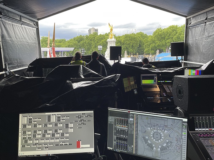 Sound designer Ben Milton, of Ben Milton Associates, instinctively knew TiMax SoundHub would be at the core of his complex sound design for the televised Queen’s Platinum Jubilee event, staged around the Queen Victoria Monument directly outside Buckingham Palace, with two end-on stages, North and South radiating outwards from the palace railings, a smaller Palace stage positioned between them in the palace forecourt, plus the main central QVM stage at the front of the Victoria Monument.