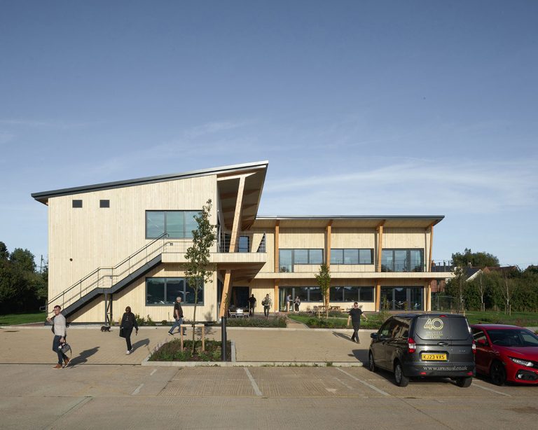 The entire building runs on 100% onsite renewable energy, and the surrounding grounds have been regenerated, adding ponds and specific landscaping bent towards rewilding. “At a cynical level, people only care about the service you provide,” stated the MD when asked about the impact this new build has had on its customers. “I think something happens when you walk the walk.”