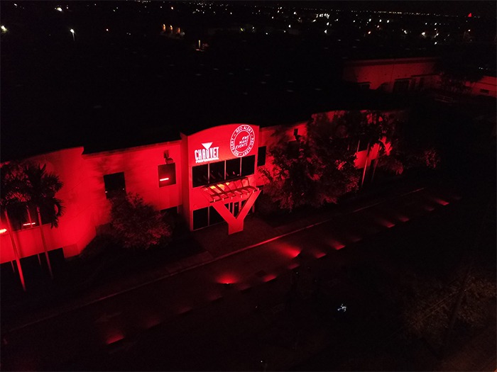 The campaign’s organisers originally hoped to light 1,500 buildings across North America in red. More recent estimates have the actual number at twice that amount. Many of these buildings are massive structures, others are famous landmarks, but for the crowd gathered at the Chauvet HQ parking lot, thinking of industry friends on this warm summer night, nothing was quite as moving as seeing their home glow red.