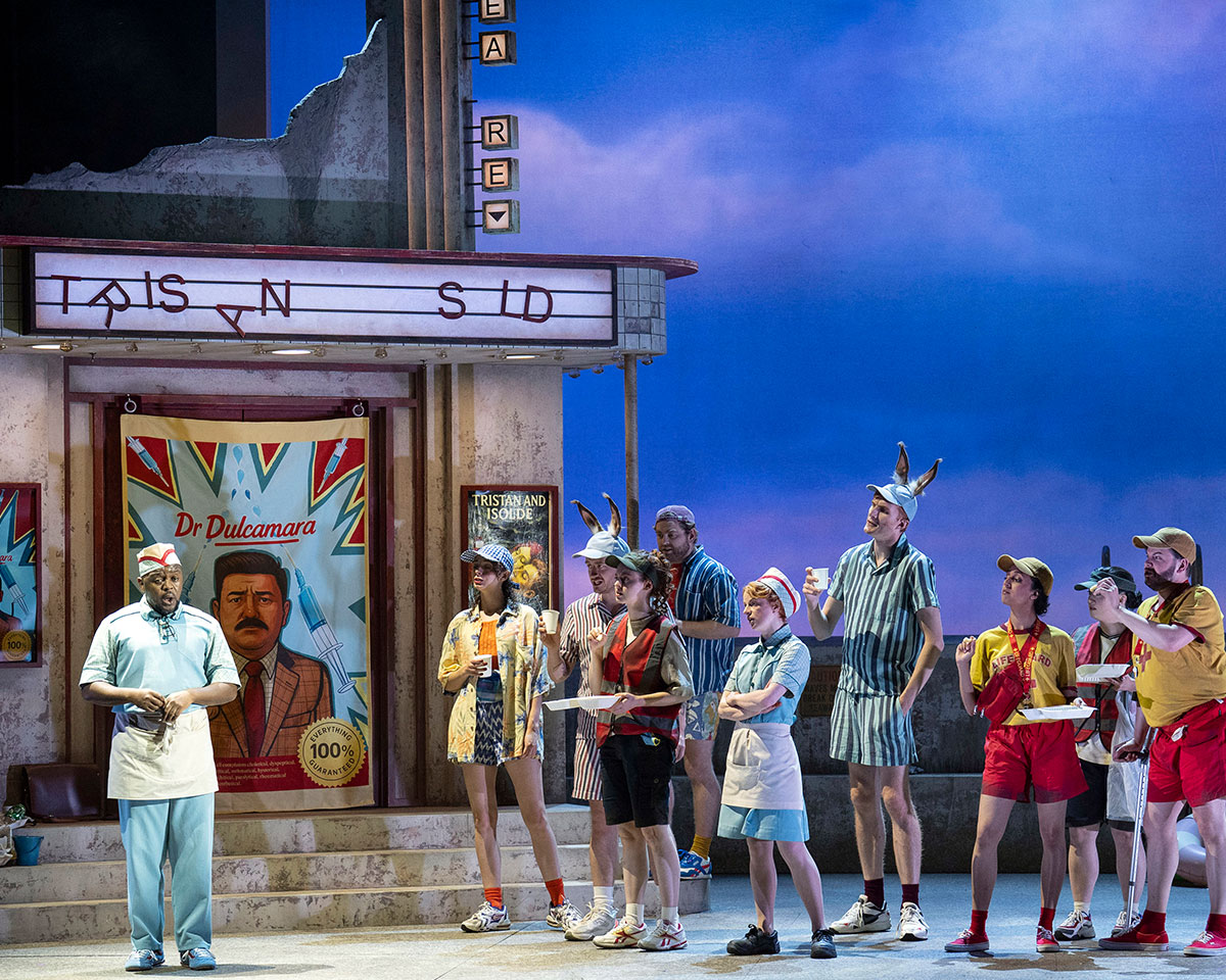 Platt’s approach to lighting opera is deeply rooted in musical storytelling. “In opera, the narrative unfolds as much through musical leitmotifs as through sung text,” he explained. “Lighting becomes a second layer of narrative. I can shift the look of the stage simply because of an oboe or a violin.” This sensitivity is vividly expressed in The Elixir of Love, where a pivotal aria sees the lighting transform to reflect Nemorino’s emotional world. “We leave reality behind and enter his head and heart,” said Platt. “The scenic practicals begin reacting to the music, shifting from naturalistic tones to colours that lift with the love and angst he’s feeling.”