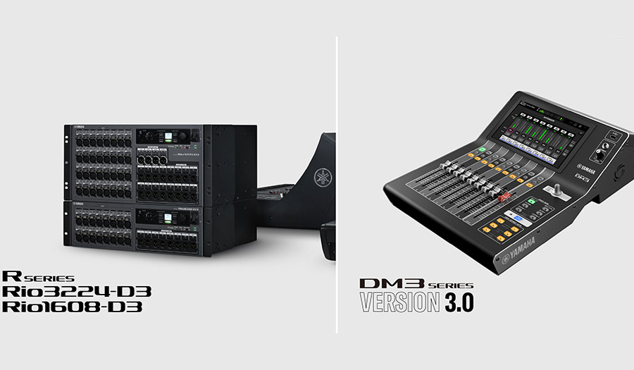 Yamaha has announced the addition of user-requested features to its DM3 series digital mixing consoles, as well as third-generation Rio3224-D3 and Rio1608-D3 input/output racks, at the 2025 NAMM Show in Anaheim, CA.